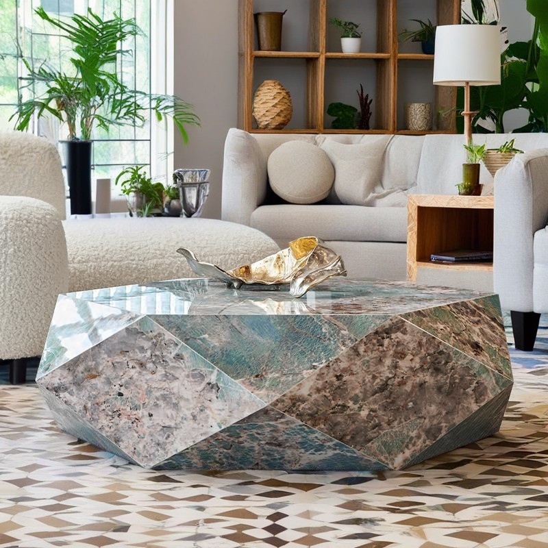 2.Geometric Marble Coffee Table: Elevating Living Spaces