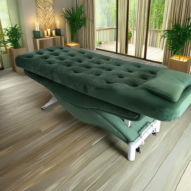 The Deluxe Emerald Massage Table stands out as one of the best massage beds available. Its plush, tufted surface invites clients into a realm of indulgence, elevating the sensation of tranquility. The deep emerald green hue, captivating yet calming, is sure to enhance the ambiance of any spa or massage studio. The velvet-like upholstery delivers a luxurious tactile experience, demonstrating high-end elegance that few professional massage beds can match.