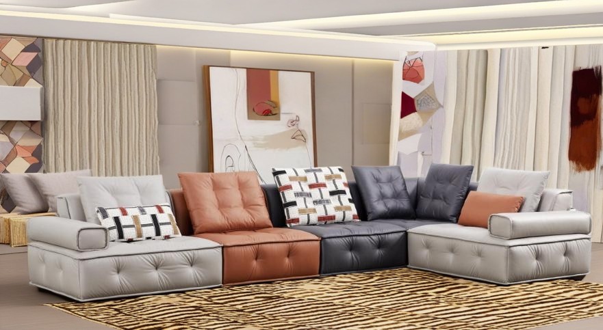 [‘I. Introduction’, ‘ A. The Importance of a Sofa in the Living Space’, ‘ B. Introducing the Modular Elegance Sectional Sofa’, ‘II. Design and Aesthetics’, ‘ A. High-Quality Material Craftsmanship’, ‘ B. Color Options: Soft Greys to Earthy Tones’, ‘ C. Quilted and Tufted Cushions’, ‘ D. Playful Mix of Plain and Geometric Pillows’, ‘III. Customizable Layout’, ‘ A. Adaptability for Compact and Large Spaces’, ‘ B. Easy Rearrangement of Modular Sections’, ‘IV. Functionality and Durability’, ‘ A. Robust Frame Construction’, ‘ B. High-Density Foam Cushion Longevity’, ‘V. Conclusion’, ‘ A. The Modular Elegance Sofa as a Statement Piece’, ‘ B. Perfect Combination of Art and Comfort’, ‘ C. Ideal for Shopping for High-Quality Couches’]