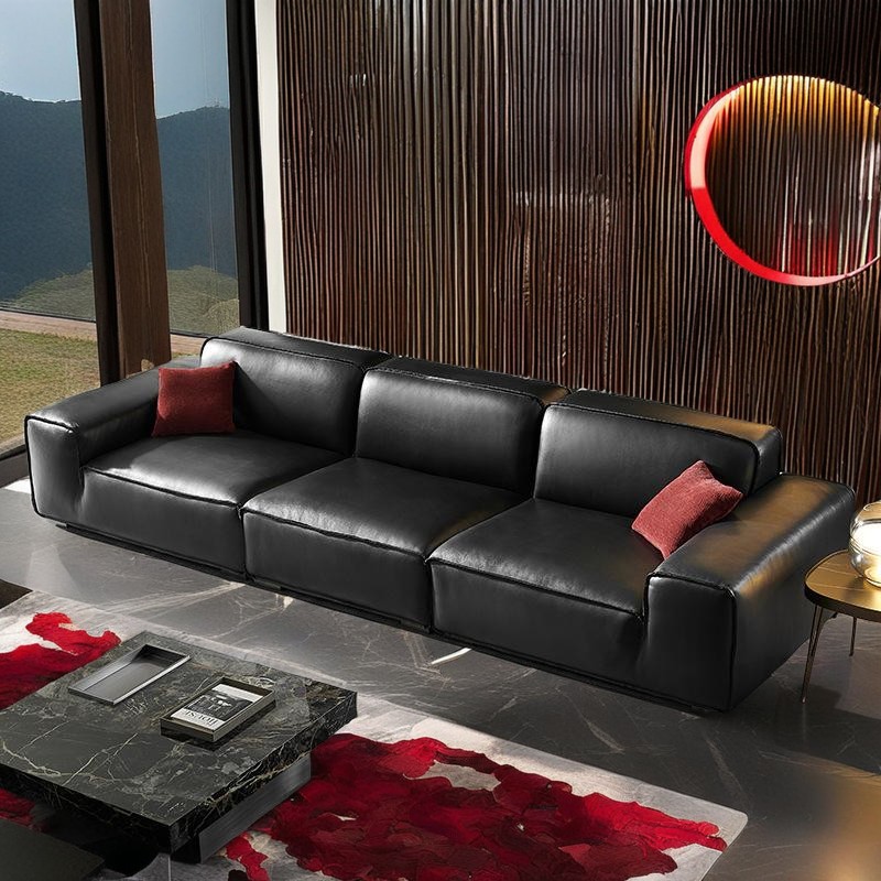 Sofa styles have evolved greatly over the years, and our luxury leather sofa represents the pinnacle of contemporary design. Its sleek black leather finish exudes elegance and durability, ideal for any modern living space. With a generous seating area and deep, plush cushioning, it guarantees the ultimate relaxation for you and your guests. Its minimalist design featuring clean lines can seamlessly integrate into various interior aesthetics, making it a versatile addition to your home.