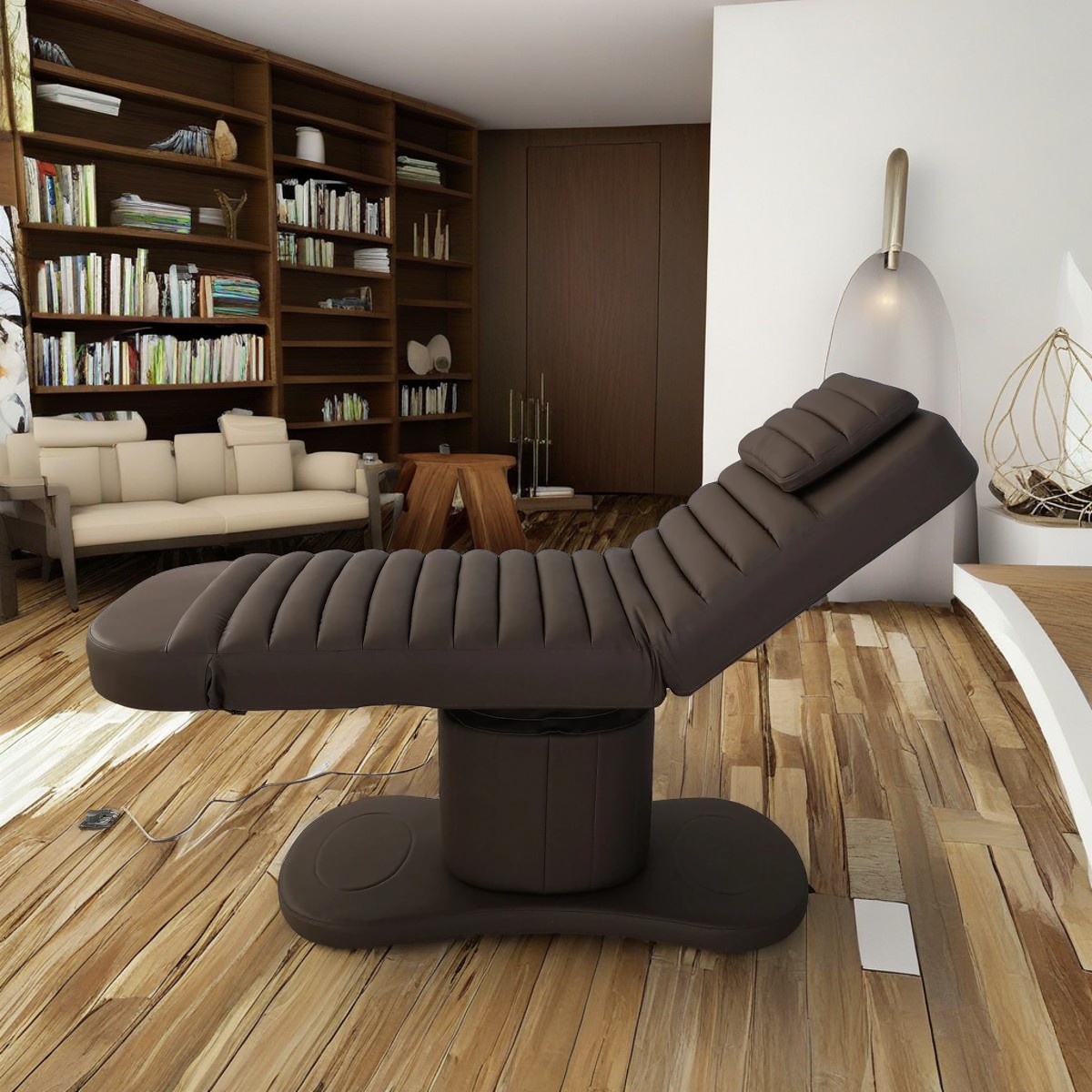 This beauty salon chair boasts an elegant brown, plush upholstery that is not only visually appealing but also incredibly comfortable. It perfectly complements both professional salons and home settings, offering a touch of sophistication that elevates any environment. The chair’s design is focused on ergonomic excellence, featuring an ergonomically contoured structure that provides holistic support from head to toe. Every padded segment is strategically placed to ensure enhanced cushioning and effective pressure distribution, making it the ideal companion during massages or beauty treatments.
