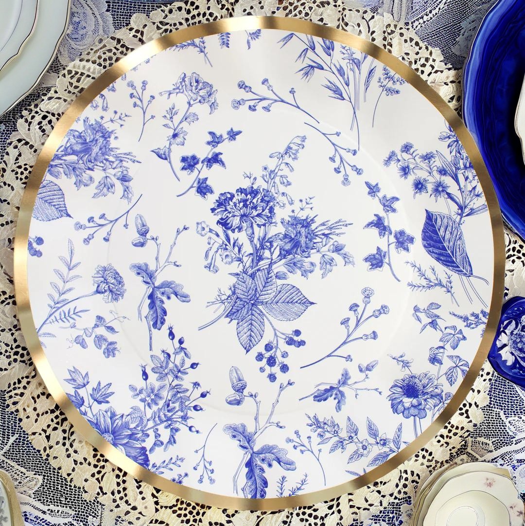 Dining is about more than just food; it’s a sensory experience that involves sight, smell, taste, and touch. Thoughtful tableware like the *Blue Floral Luxe Dinner Plate* enhances this multi-sensory engagement. With its intricate botanical detailing and sophisticated finish, this plate adds a visual appeal that enhances the overall presentation of your meal.