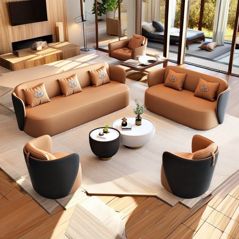 What sets this collection apart is its ability to seamlessly blend into different environments, from private hotel suites to upscale office lounges. The harmonious combination of warm tan and contemporary black allows for flexibility in adapting to various interior themes, whether they are neutral or bold. The minimalist detailing, clean lines, and rounded silhouettes integrate effortlessly into high-glam or subtly elegant living spaces. Each piece is meticulously crafted with premium-grade upholstery, high-resilience cushions, and sturdy construction. This guarantees not only a sophisticated appearance but also ensures the sofa’s durability over time.