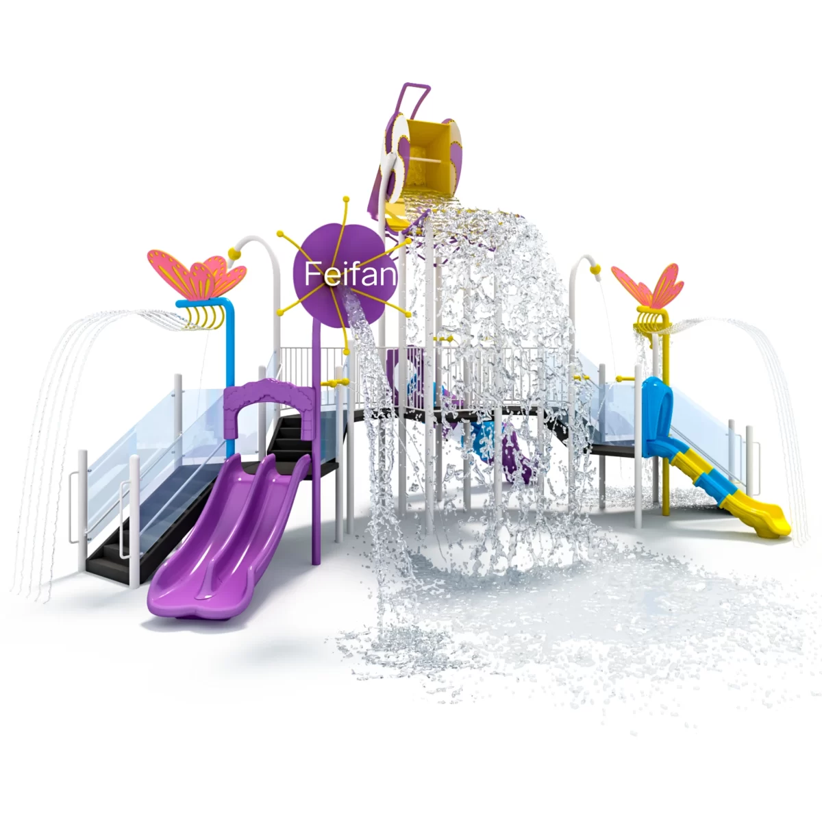 Water House is a children’s interactive castle designed for small water parks, with rich and interesting water entertainment functions such as: water curtain, small slide, spray color column, spiral slide, black hole slide, wave slide, big skip, waterfall, ball row, eight seal wheel, platform bucket curve ladder, climbing net, folding water lotus leaf, etc., so that children can explore endless fun inside.