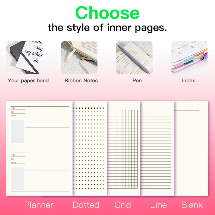 Accessories: Magnet, Ribbon, Elastic band, String, YO ring, Loose leaf etc.
