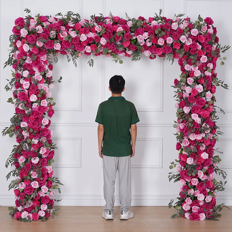 A wedding flower wall is more than just a backdrop; it’s a stunning focal point that sets the stage for romance and elegance. The meticulously arranged roses in shades of pink and white create a lush and vibrant atmosphere, providing the perfect setting for unforgettable photo opportunities and enveloping your special event in a celebratory mood. The quality and depth of color in the carefully selected roses ensure that the floral wall remains vivid and captivating throughout your event, serving as a breathtaking centerpiece. This versatile floral backdrop is ideal for weddings, engagements, anniversaries, or any occasion that calls for a touch of luxury and chic decoration.