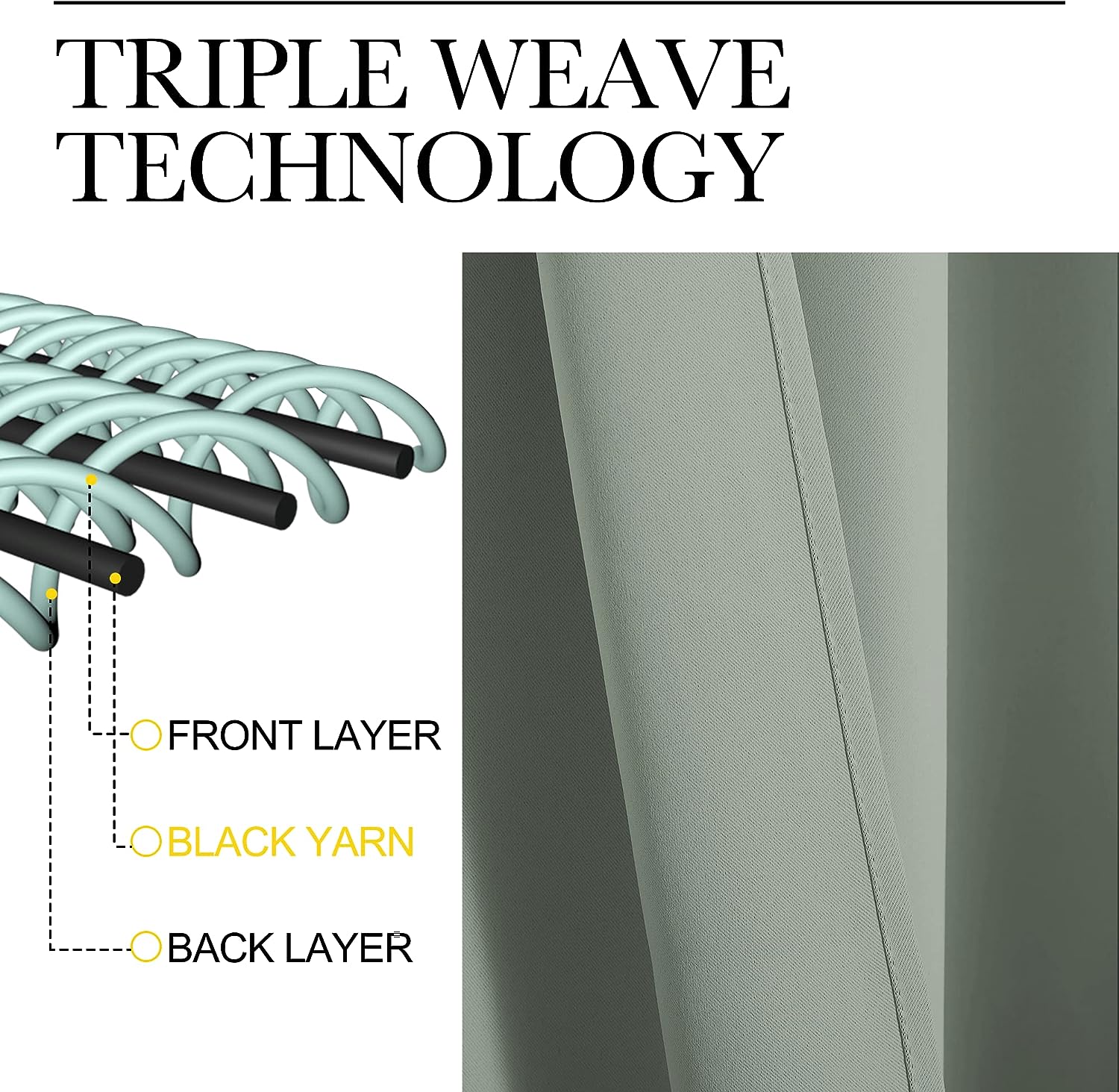 • MULTI-FUNCTION: Super heavy and soft Blackout Curtain Panels are very upmarket. Besides, 85%-99% light blocking, thermal insulated, soundproof, Fade-resistant, energy-efficient. Thread trimmed and wrinkle-free, both sides are the same color.