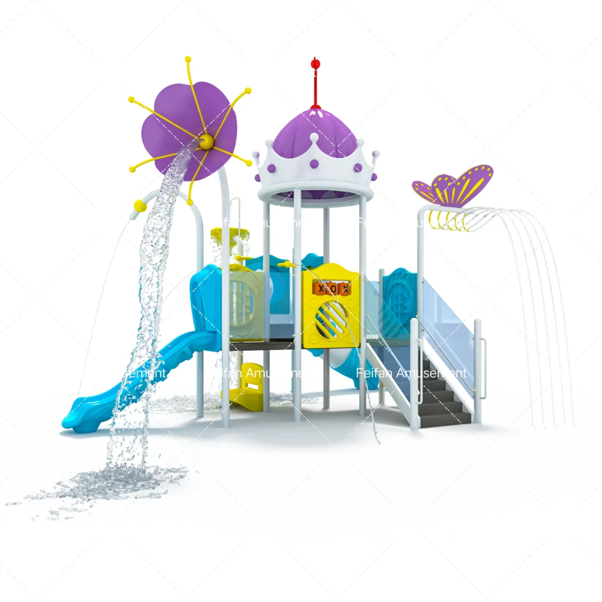 Water House is a children’s interactive castle designed for small water parks, with rich and interesting water entertainment functions such as: water curtain, small slide, spray color column, spiral slide, black hole slide, wave slide, big skip, waterfall, ball row, eight seal wheel, platform bucket curve ladder, climbing net, folding water lotus leaf, etc., so that children can explore endless fun inside.