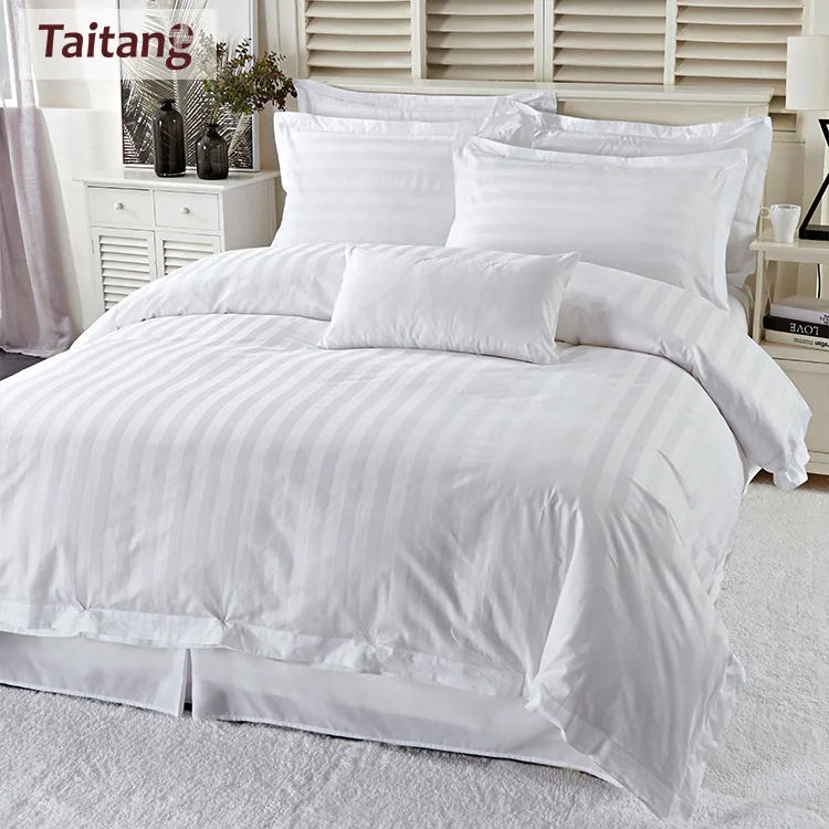 Taitang Satin Stripe Bed Linen 3CM White Stripe Hotel Bed Sheet
