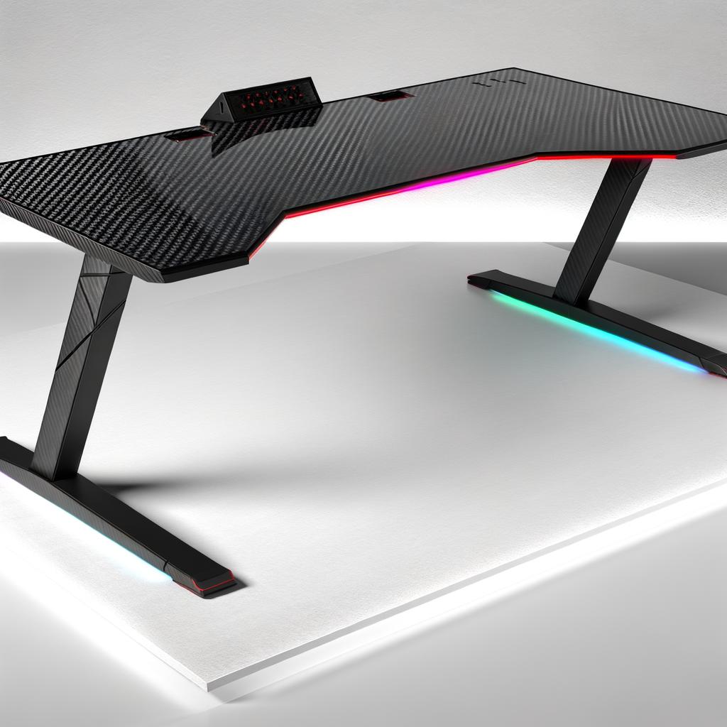The gaming desk is an essential piece of furniture for any avid gamer who values both style and functionality. Crafted with a sleek carbon fiber texture, the desk provides a modern look and a superior feel, perfect for intense gaming sessions or productive workdays. The sturdy structure with bold red legs not only provides stability but also adds a touch of vibrancy to the design. The tabletop surface offers a smooth area for easy mouse movement.